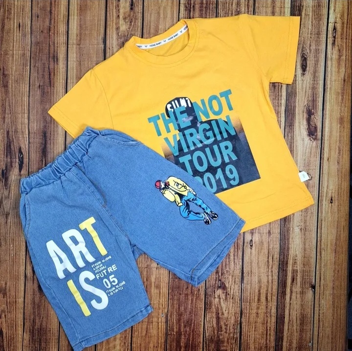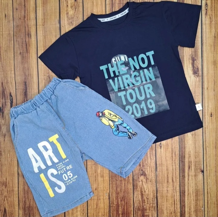 این ست تابستانی شامل یک تیشرت خنک و سبک در رنگهای جذاب آبی، زرد و سورمهای به همراه یک شلوارک لی آبی خوشدوخت و راحت است. طراحی ساده اما شیک این ست، آن را به انتخابی عالی برای استفاده روزمره، گردش یا بازیهای کودکانه در روزهای گرم تبدیل کرده است.