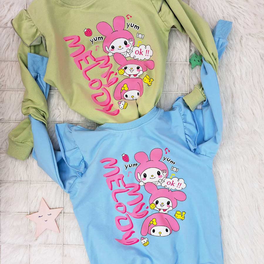 بلوز دارای طراحی فانتزی با رنگ های شاد و چاپ باکیفیت شخصیت My Melody است که حتی پس از شستوشو، رنگ و طرح خود را حفظ میکند. مدل بلوز آستین بلند با چین ظریف روی سرشانهها و شلوار کمرکشی با بند تنظیمکننده، باعث میشود لباس بهخوبی روی تن کودک بنشیند و آزادی حرکت را فراهم کند.