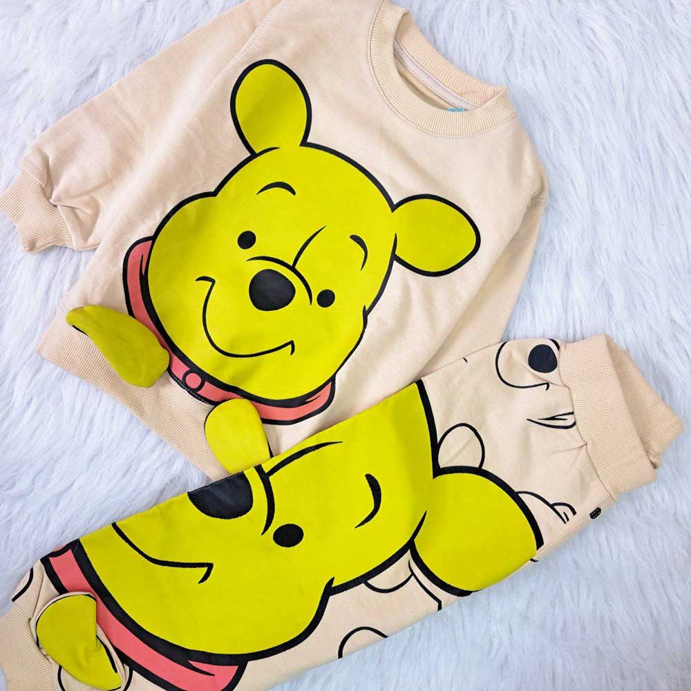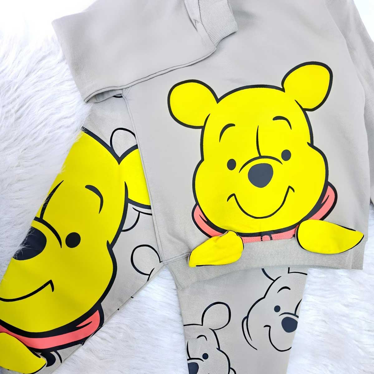 این ست زیبا از جنس نخ پنبه مرغوب دوخته شده و برای فصول خنک سال مانند پاییز و زمستان انتخابی عالی است. طراحی خاص آن با چاپ بزرگ چهرهی شخصیت محبوب «وینی پو» روی بلوز و جزئیات برجستهی دستها، ظاهری خاص و کودکانه به لباس میبخشد. رنگ ملایم طوسی در کنار چاپ زرد درخشان، ترکیبی شاد و چشمنواز ایجاد کرده است.