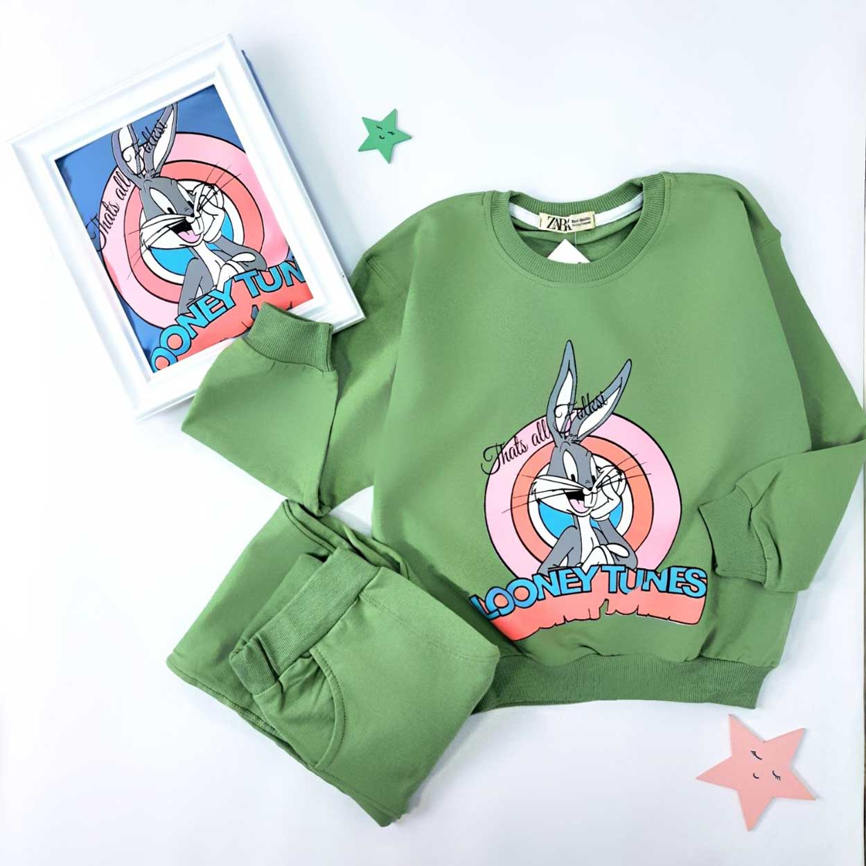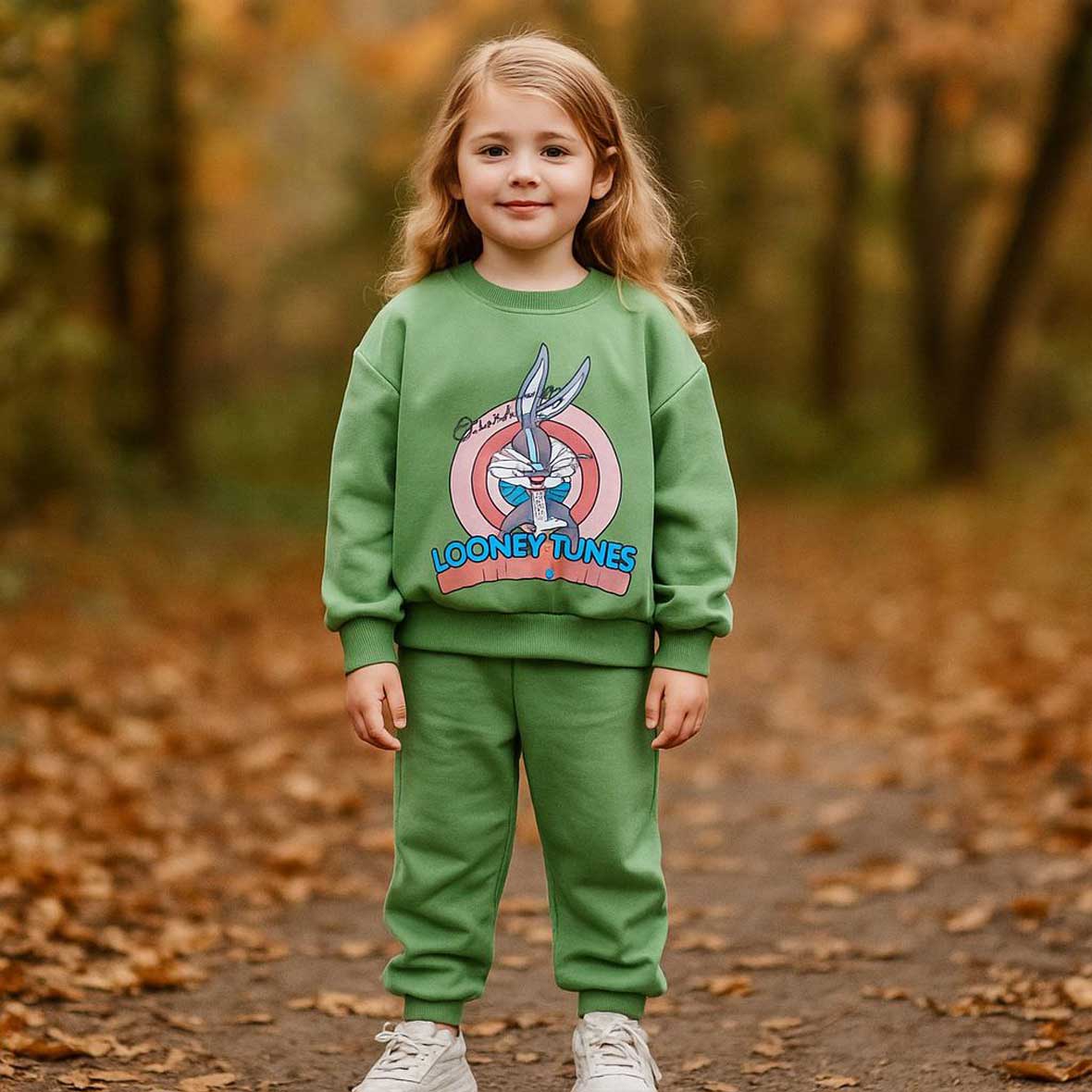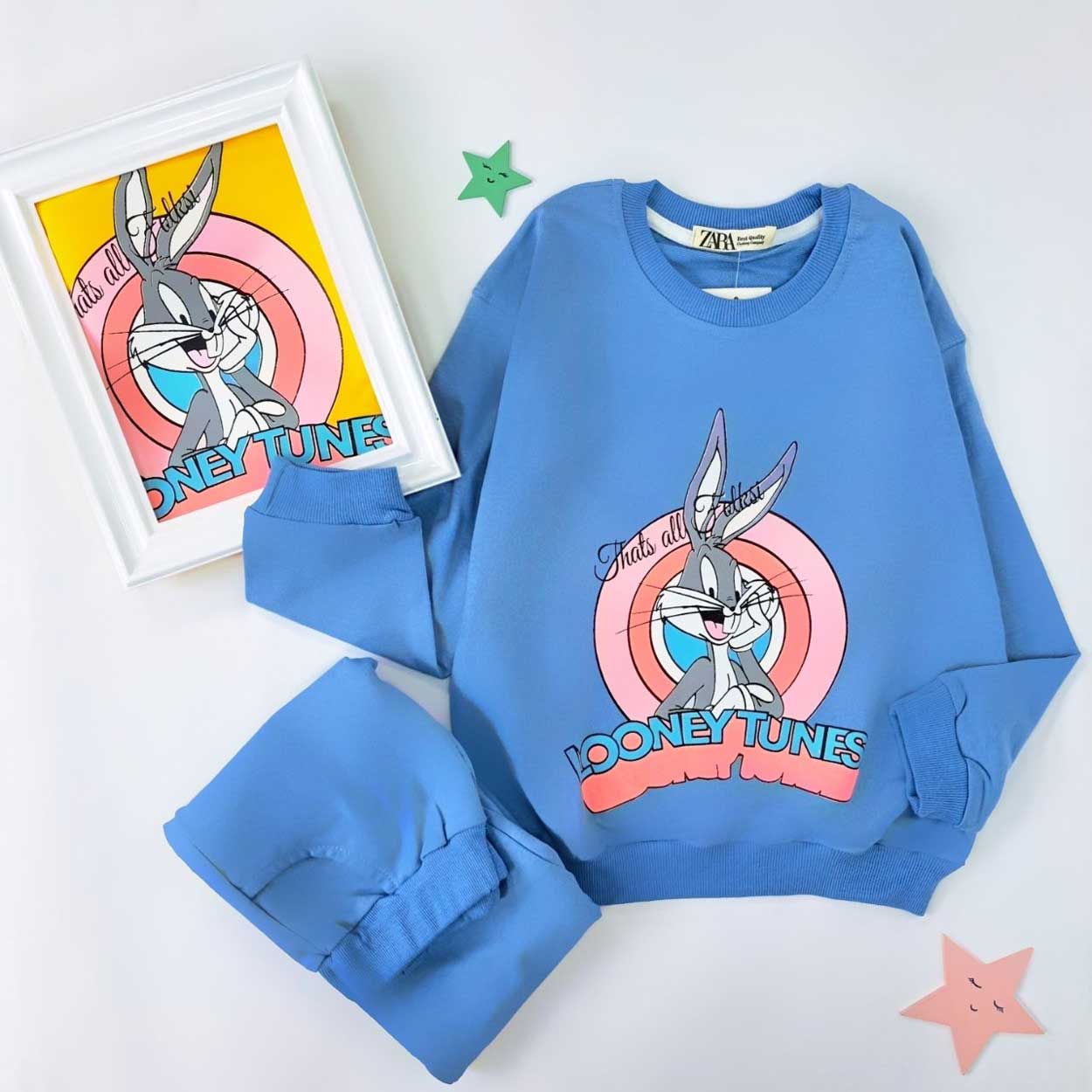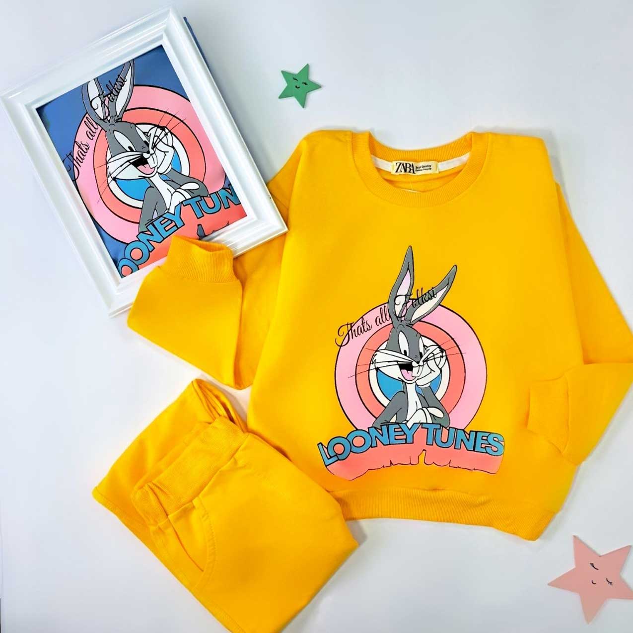ست بلوز و شلوار دخترانه با تصویر محبوب Bugs Bunny، انتخابی شاد و راحت برای فصل پاییز و زمستان است.