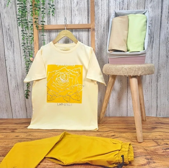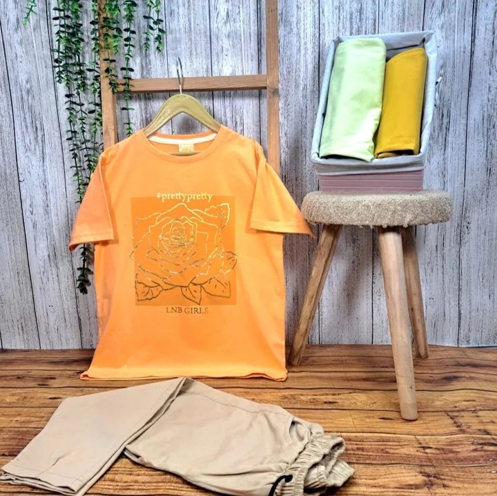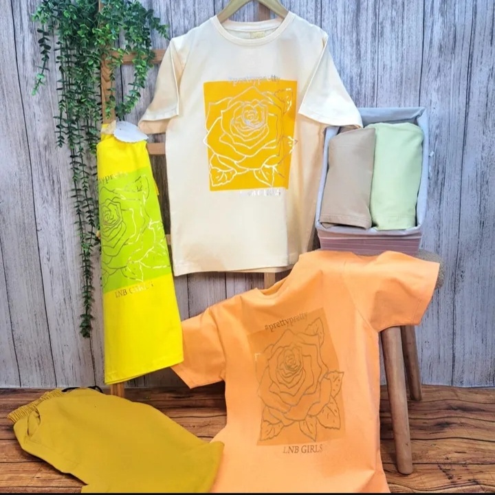 • این ست دخترانه تابستانی یک انتخاب شاد و راحت برای فصل گرم سال است تیشرت آستین کوتاه با چاپ گل رز