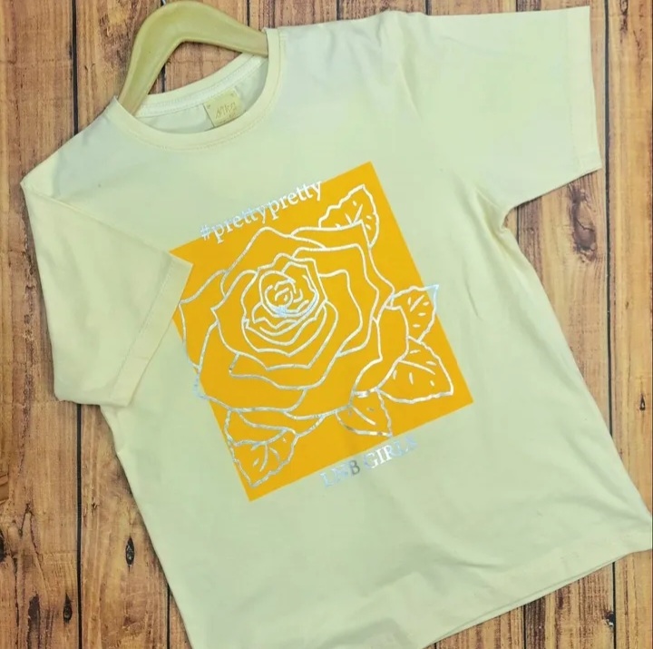 • تیشرت دخترانه با یقه گرد و طرح چاپی گل مدرن و دخترانه