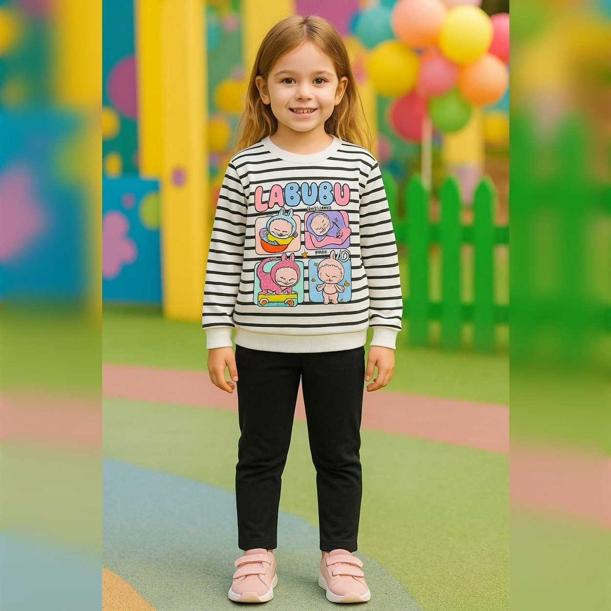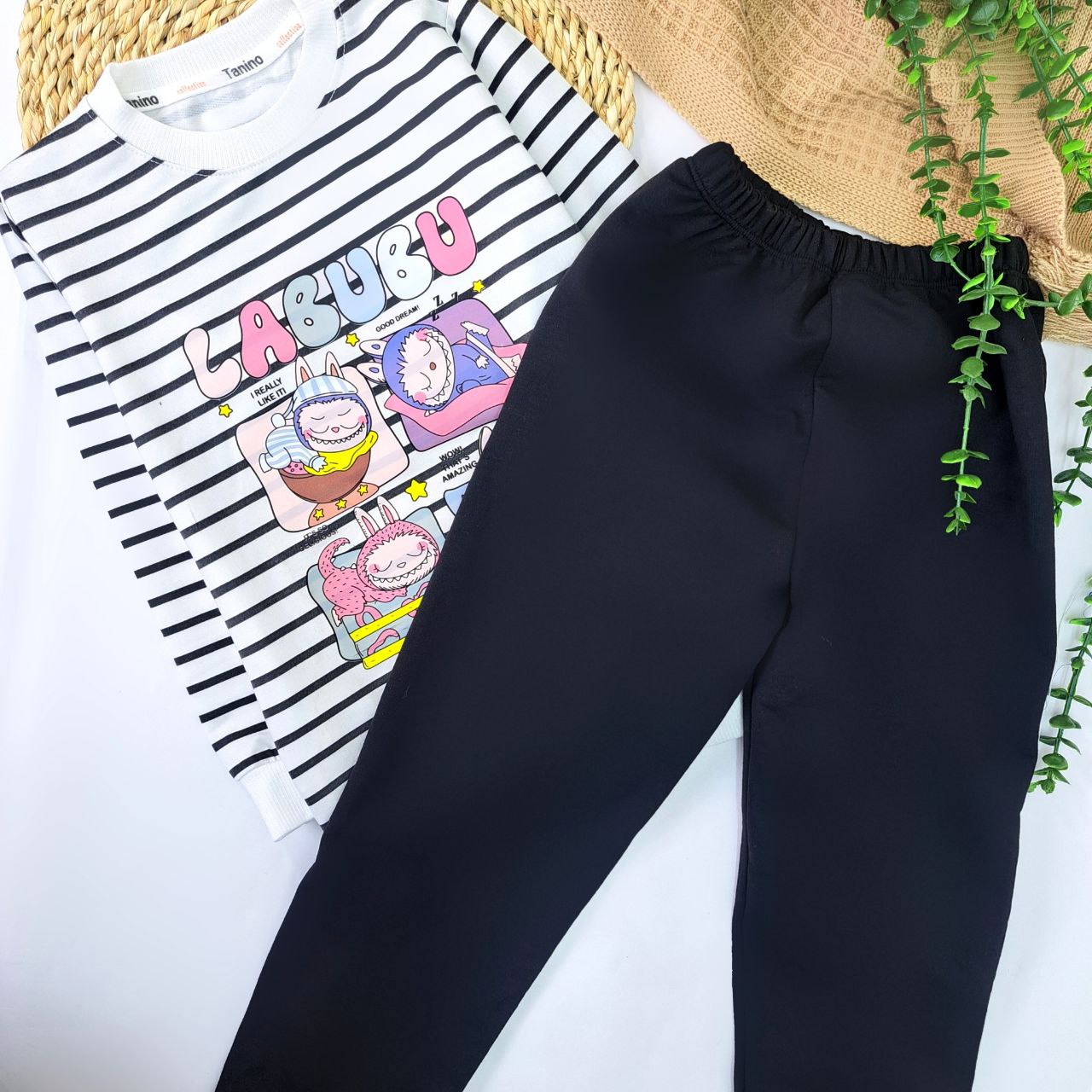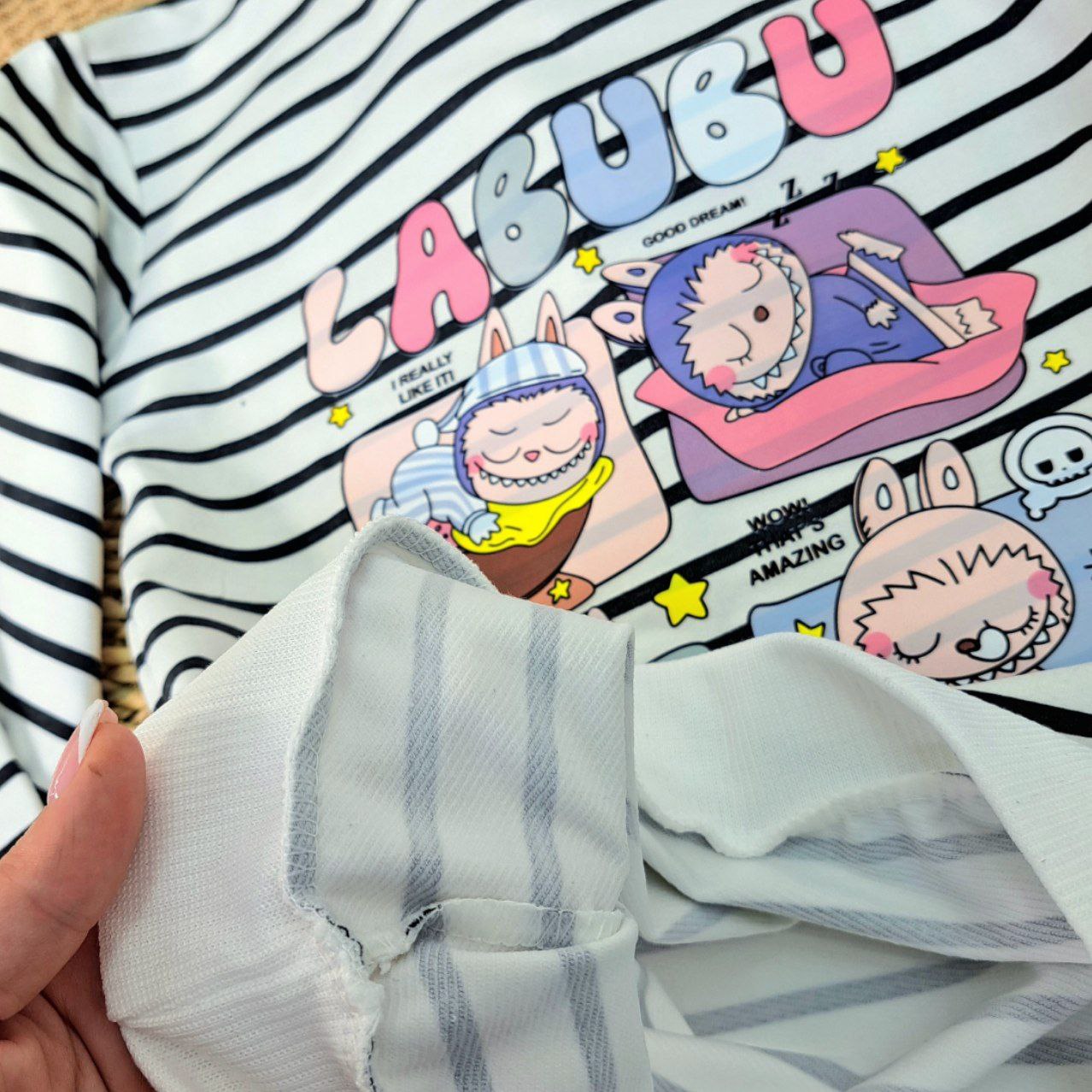 این ست بلوز و شلوار دخترانه مدل LABUBU راه راه یکی از انتخابهای جذاب و پرفروش است.