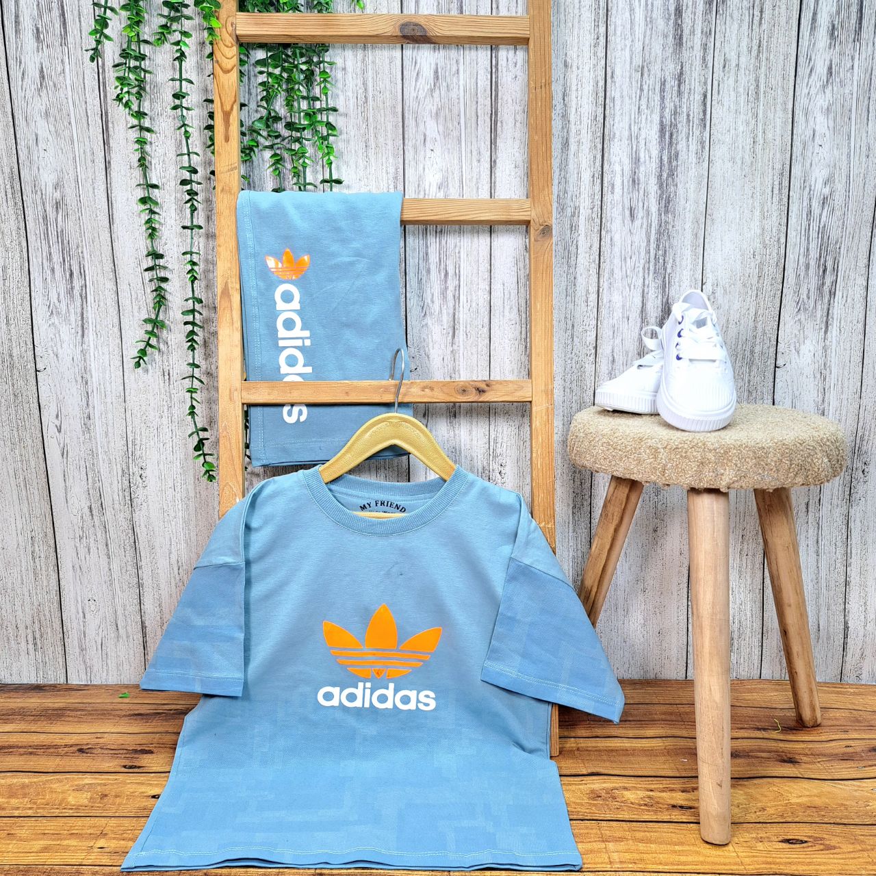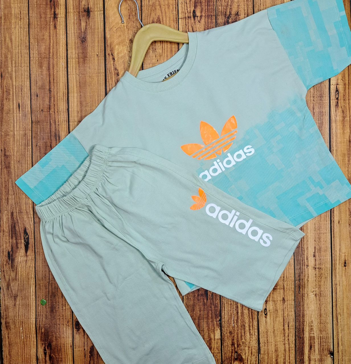 این ست شامل تیشرت و شلوارک در رنگ های سبز پاستلی ملایم , کالباسی , آبی و خردلی است. تیشرت دارای آستینهای کوتاه با طرح گرافیکی دیجیتال و چاپ لوگوی نارنجی و سفید Adidas روی سینه است. شلوارک نیز با کمر کشی راحت طراحی شده و لوگوی برند بهصورت چاپی روی آن قرار دارد. جنس پارچه نرم و سبک بوده و از نخ پنبهای باکیفیت تهیه شده که مناسب فصلهای گرم سال میباشد. این ست، انتخابی ایدهآل برای استفاده روزمره، بازی و فعالیتهای کودکانه است.