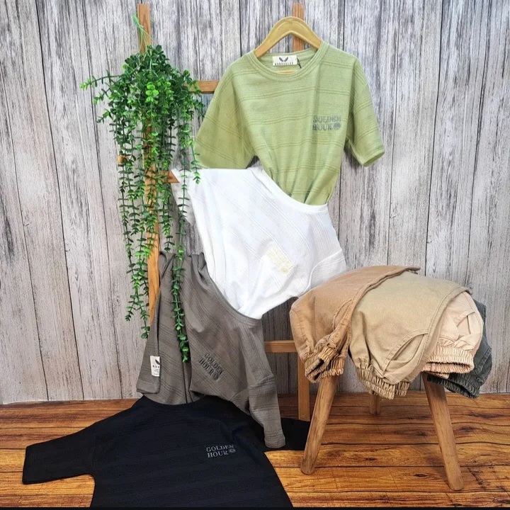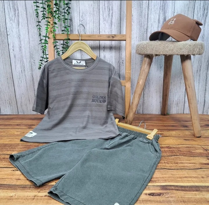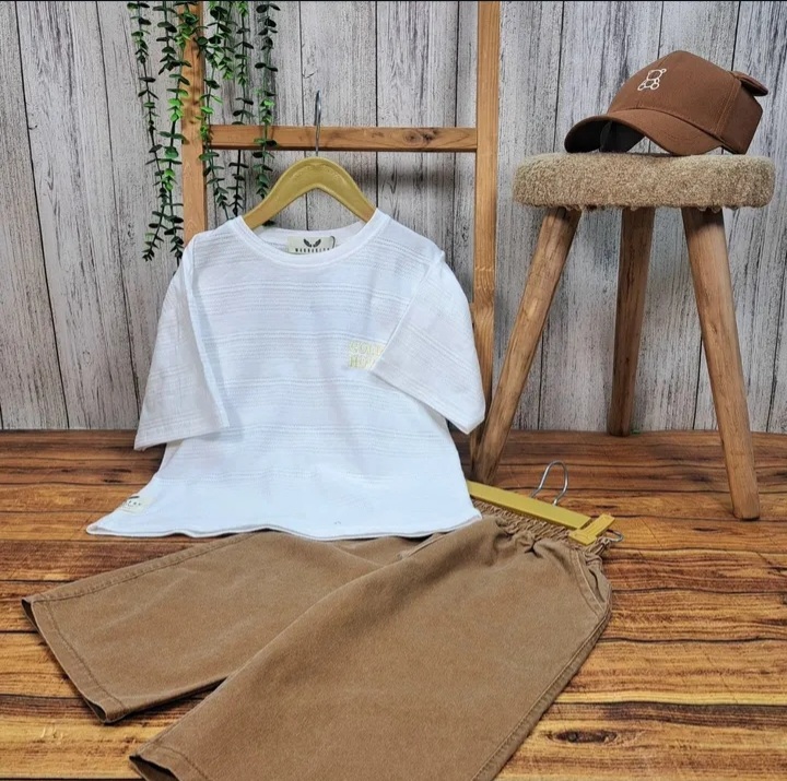 ست راحت و شیک، مناسب برای روزهای گرم تابستان! این ست شامل یک تیشرت آستین کوتاه و یک شلوارک کمر کشی است که با طراحی ساده، مینیمال و رنگهای ملایم، گزینهای ایدهآل برای استایل روزمره کودکان محسوب میشود.