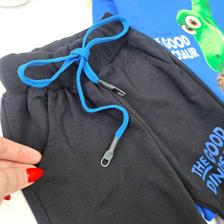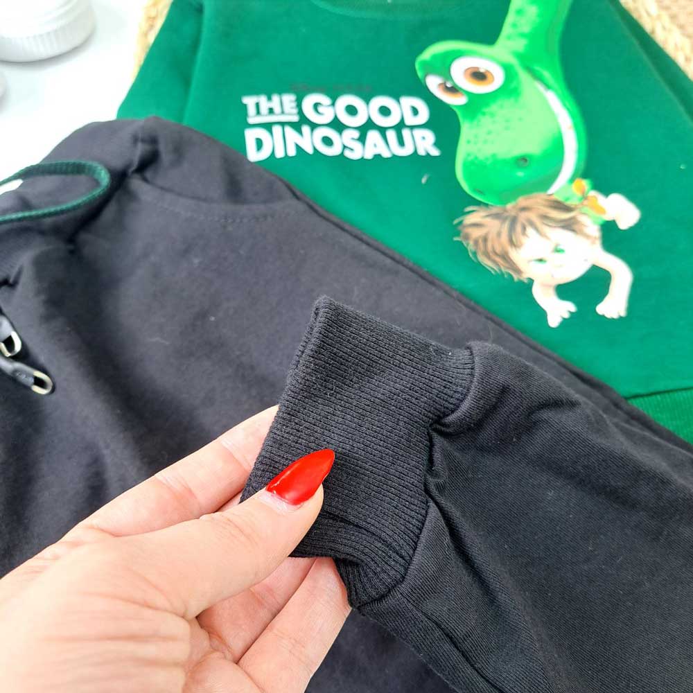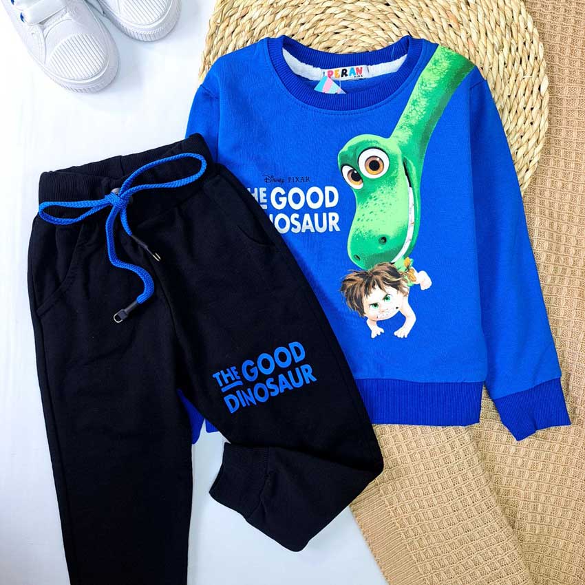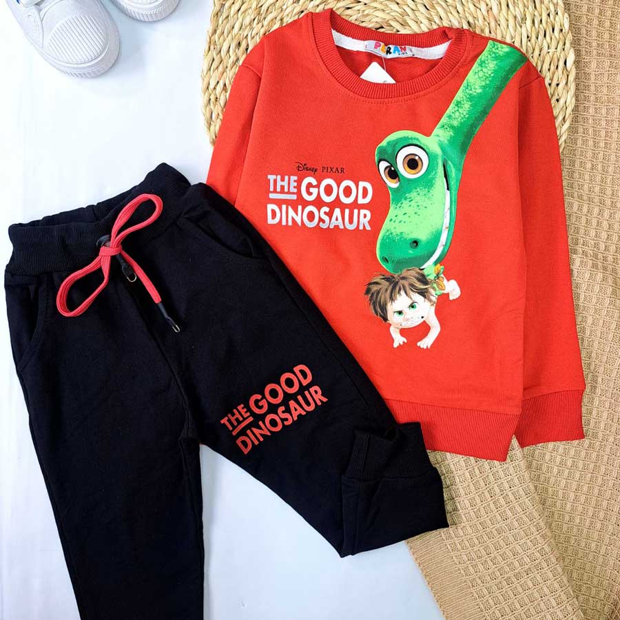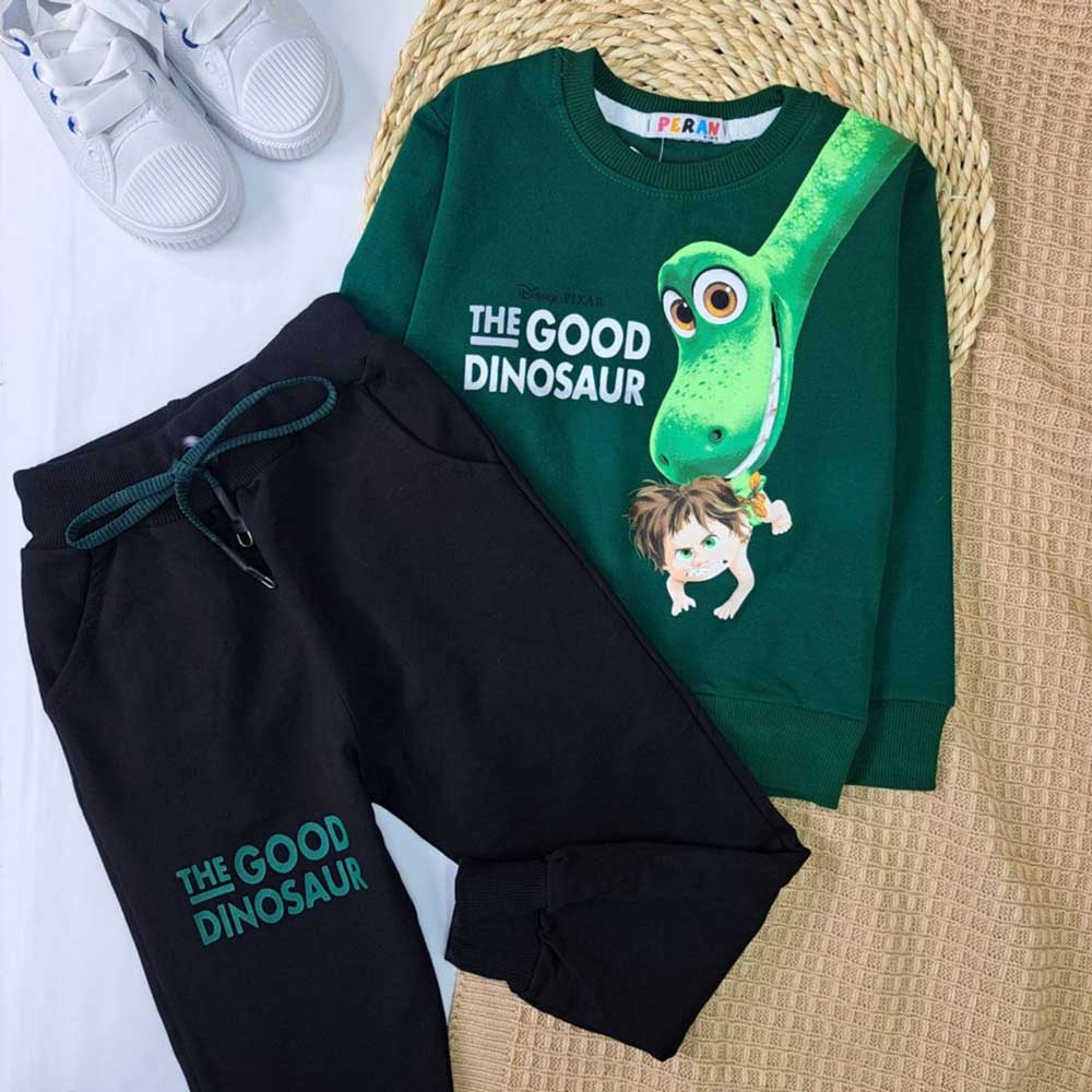 این ست زیبا شامل بلوز با طرح جذاب انیمیشن معروف The Good Dinosaur با شلوار مشکی هماهنگ است .