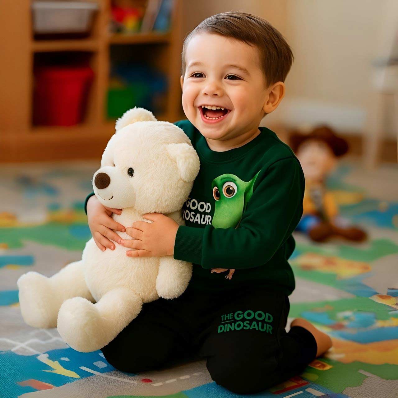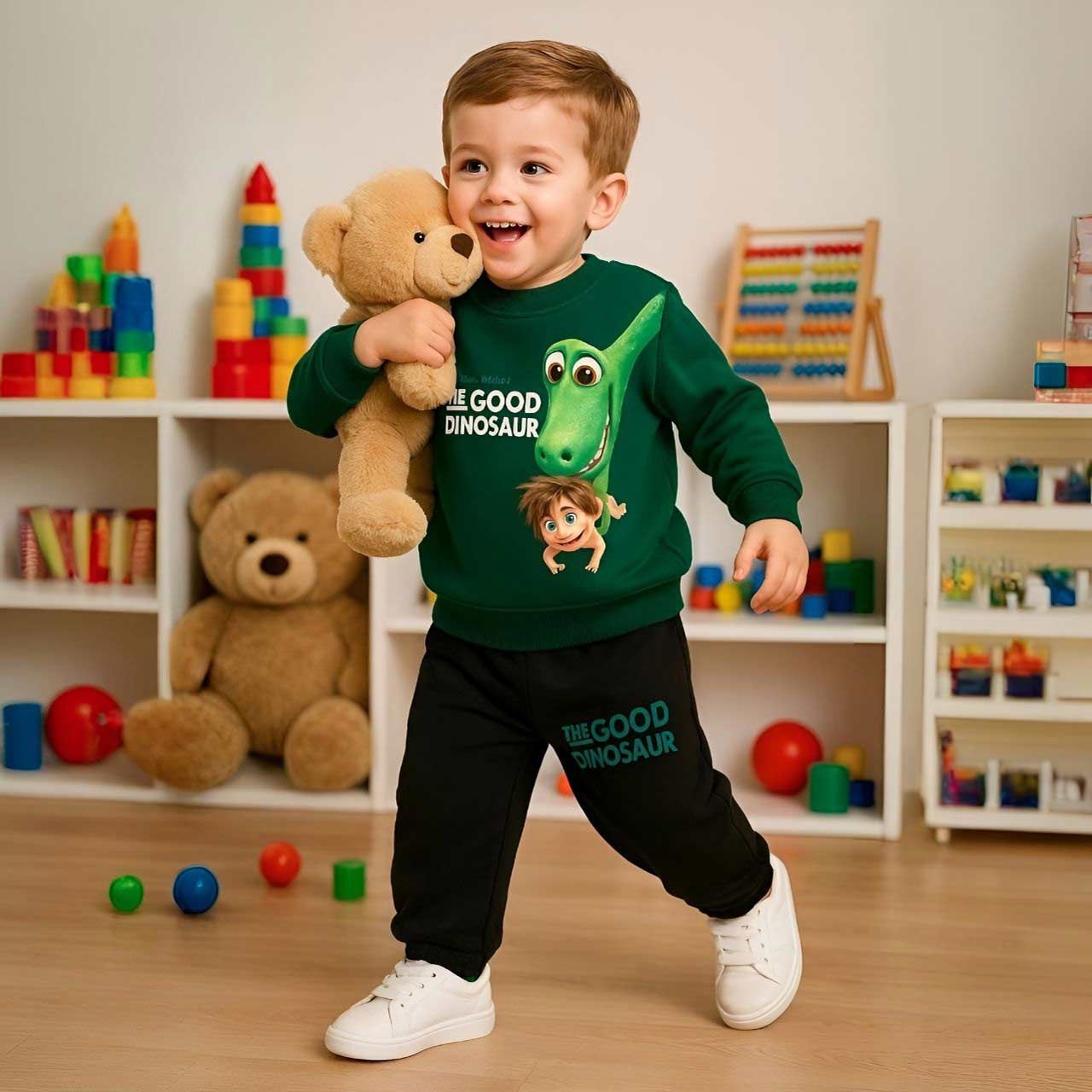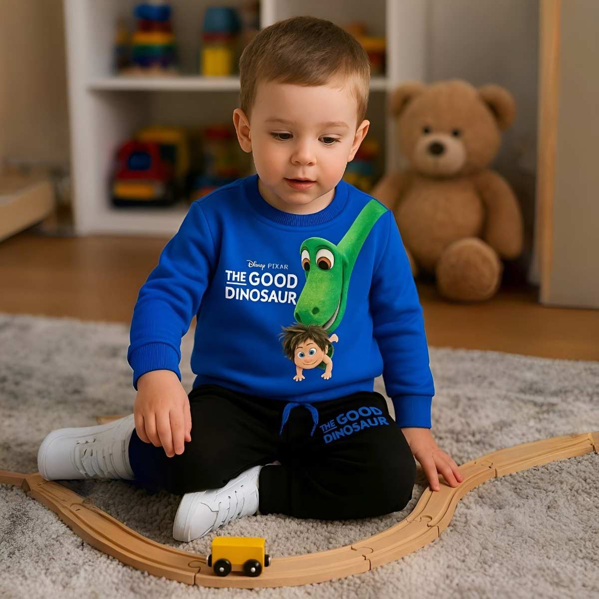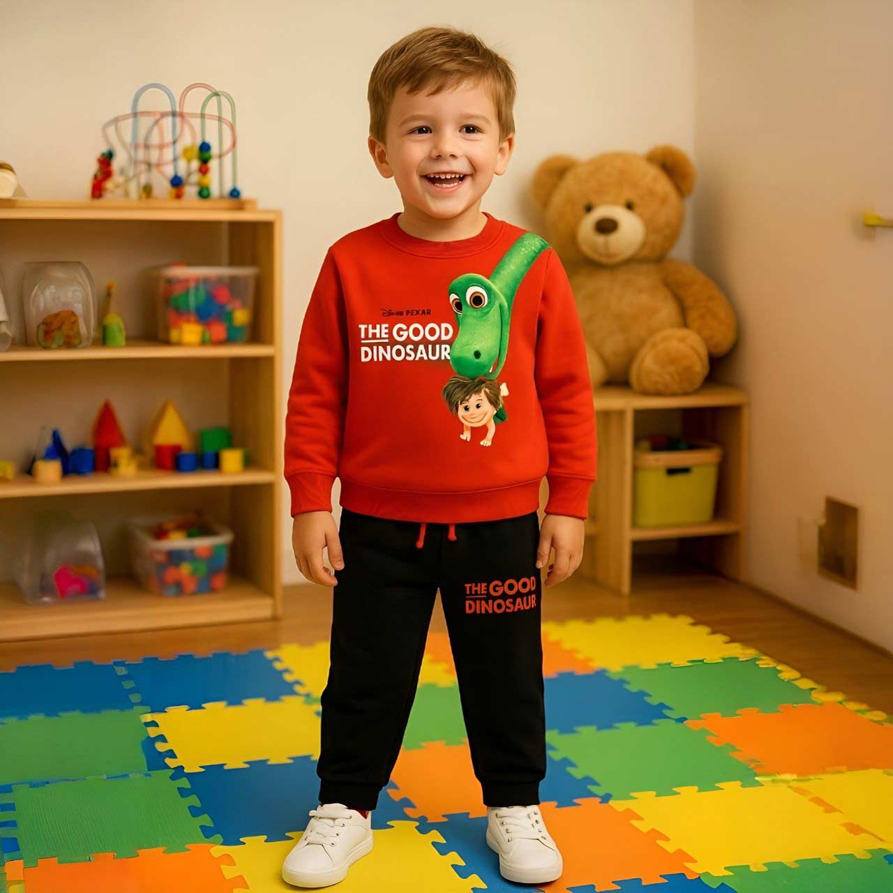 این ست زیبا شامل بلوز با طرح جذاب انیمیشن معروف The Good Dinosaur با شلوار مشکی هماهنگ است .