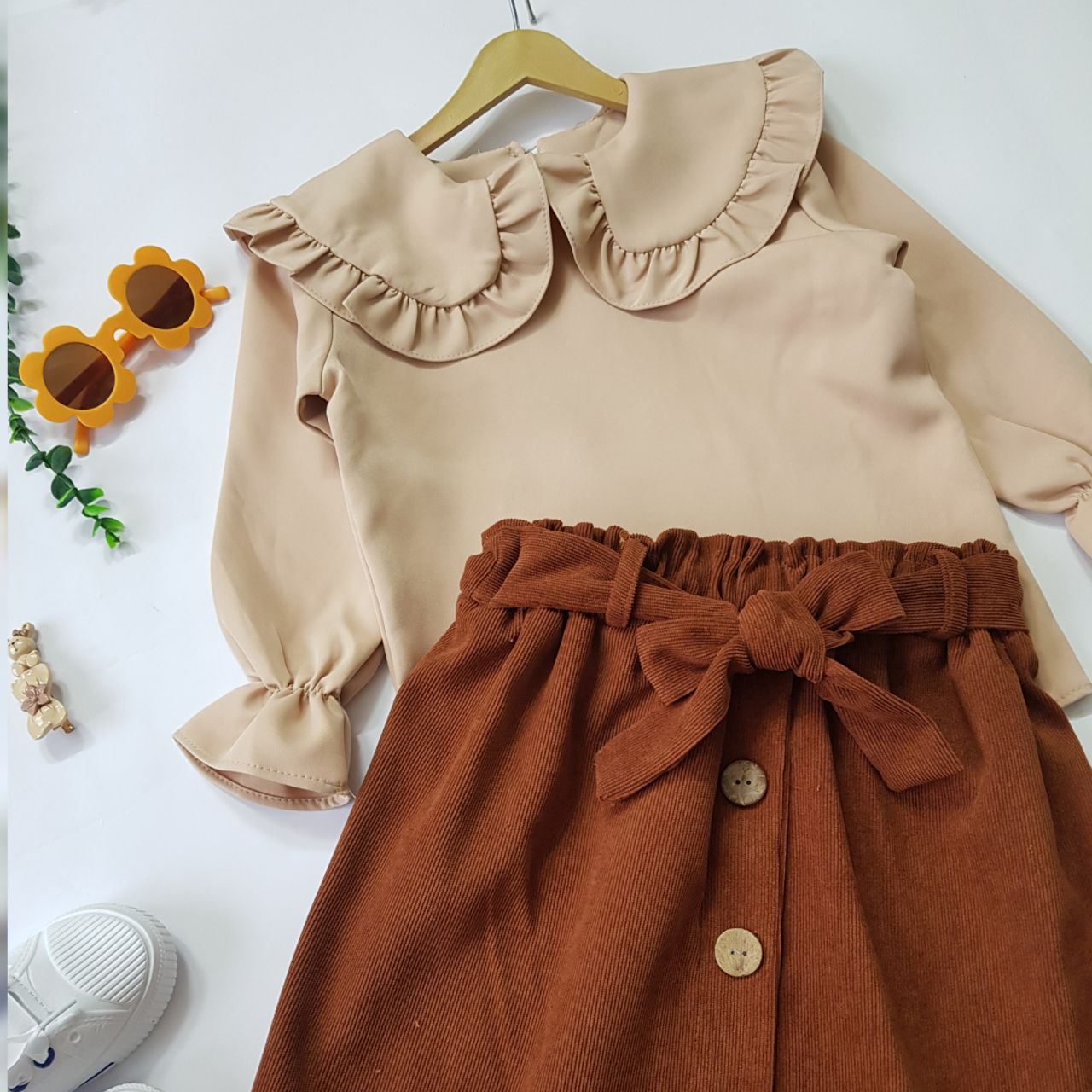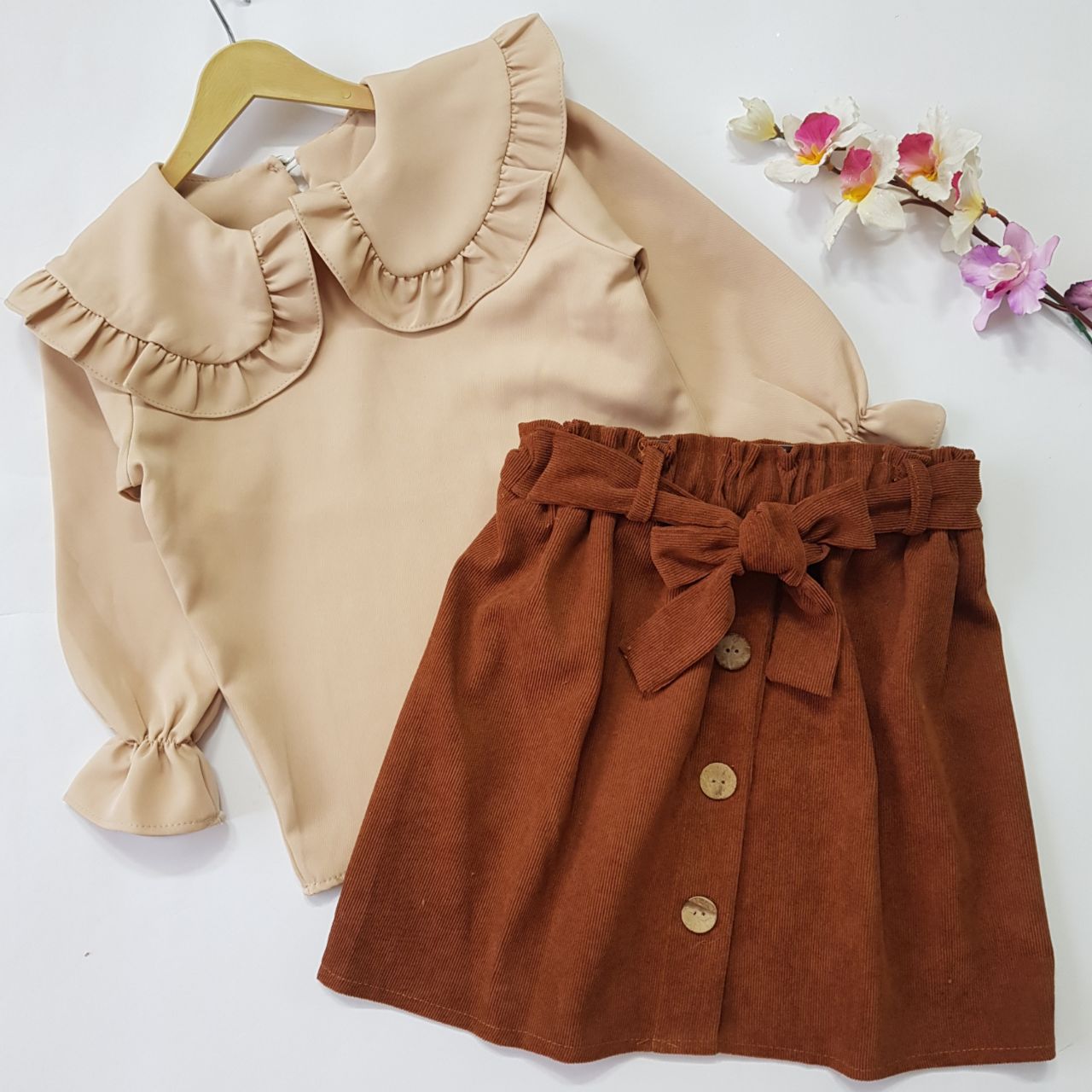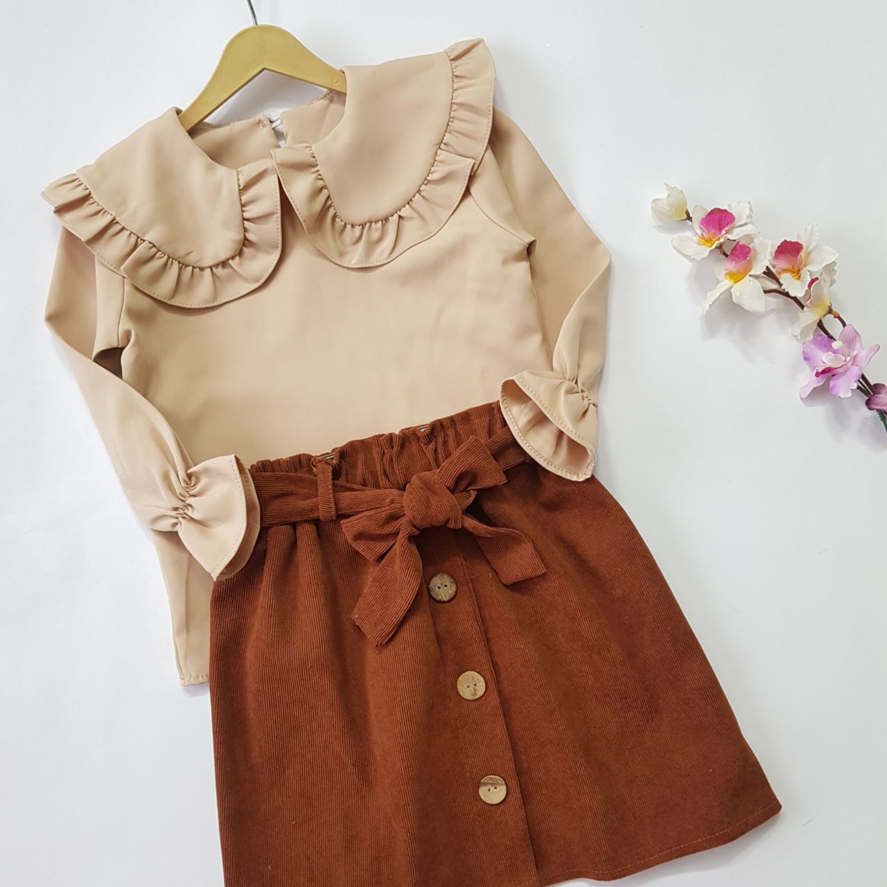 ✅ تکرنگ(شومیز کرم،دامن قهوه ای)