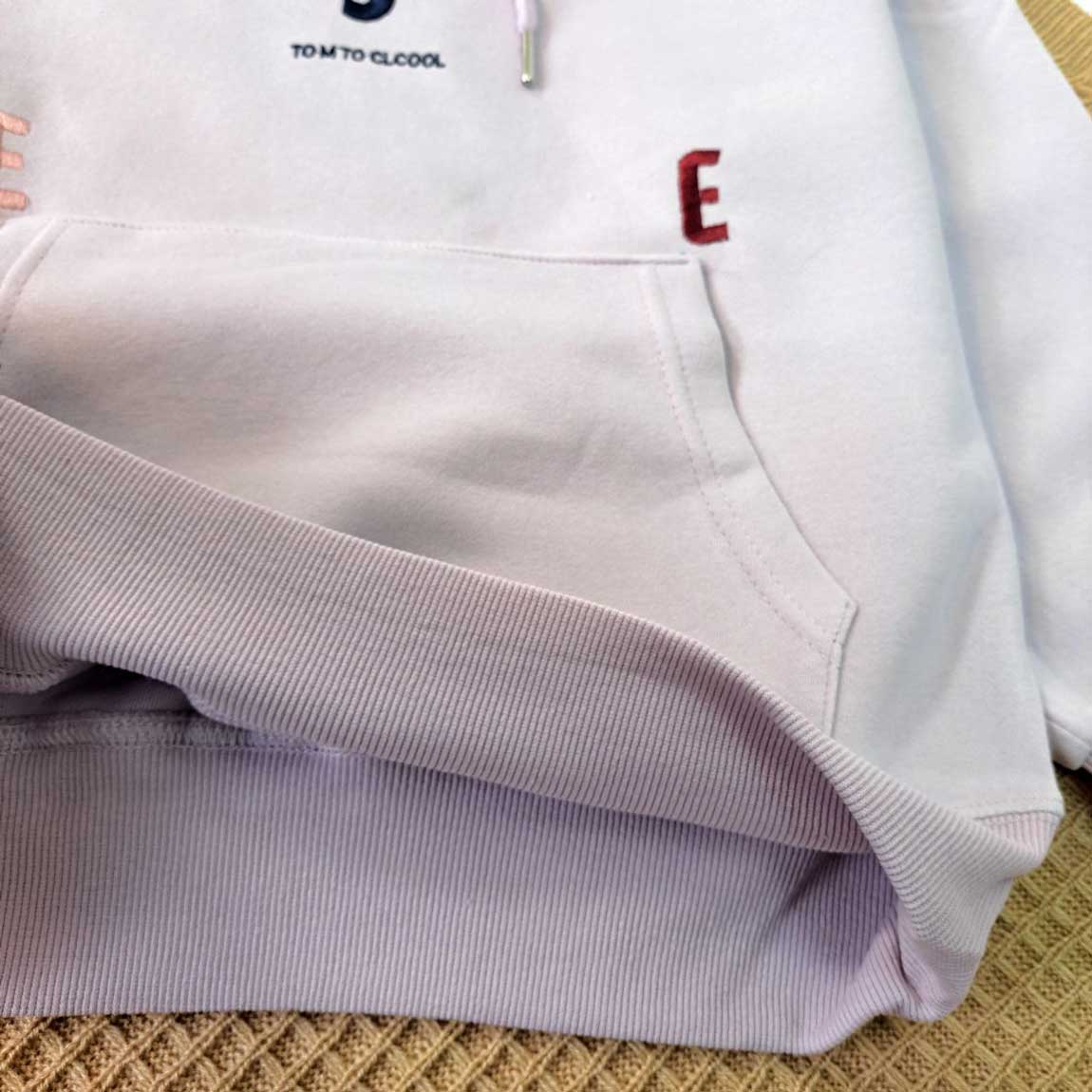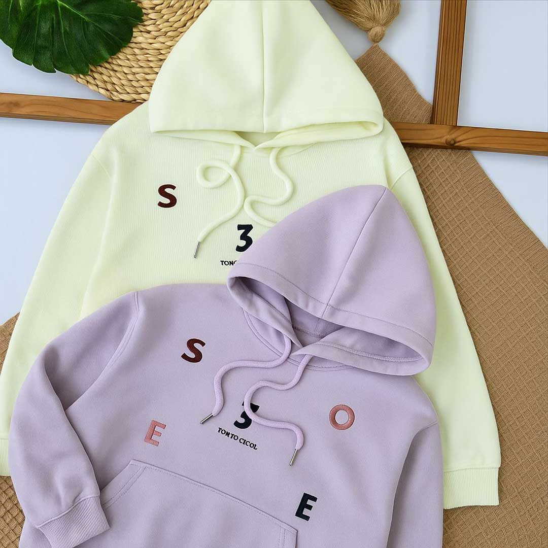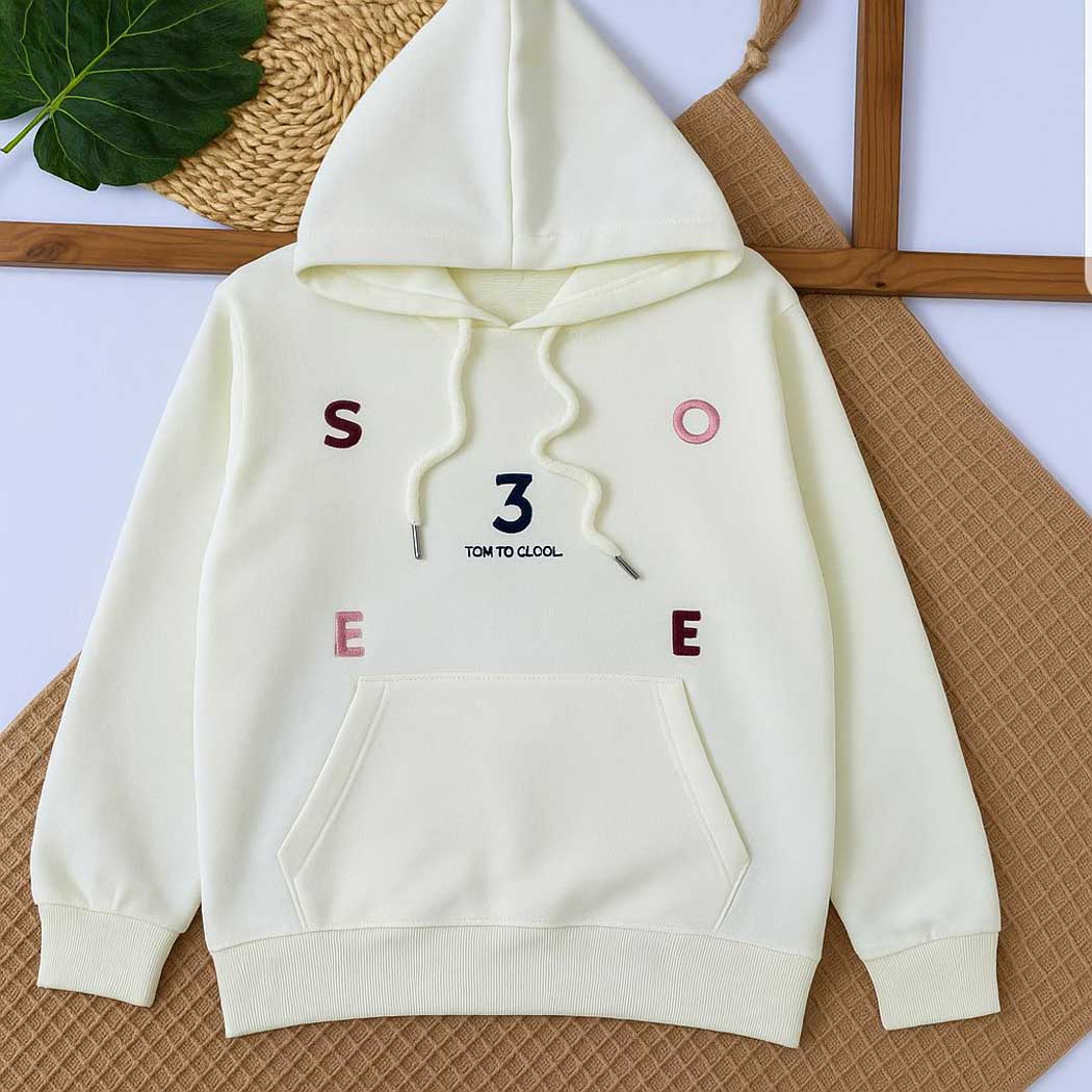 این هودی بچگانه با طراحی مینیمال و چاپ حروف فانتزی، گزینهای ایدهآل برای فصول پاییز و زمستان است. رنگ روشن و دوخت تمیز این محصول، ظاهری شیک و مدرن برای کودک ایجاد میکند.