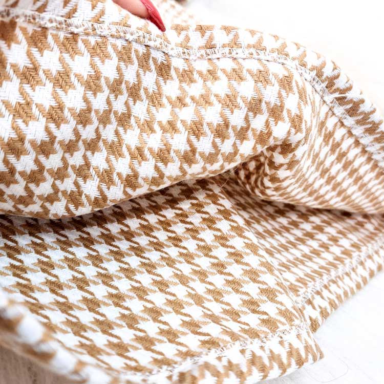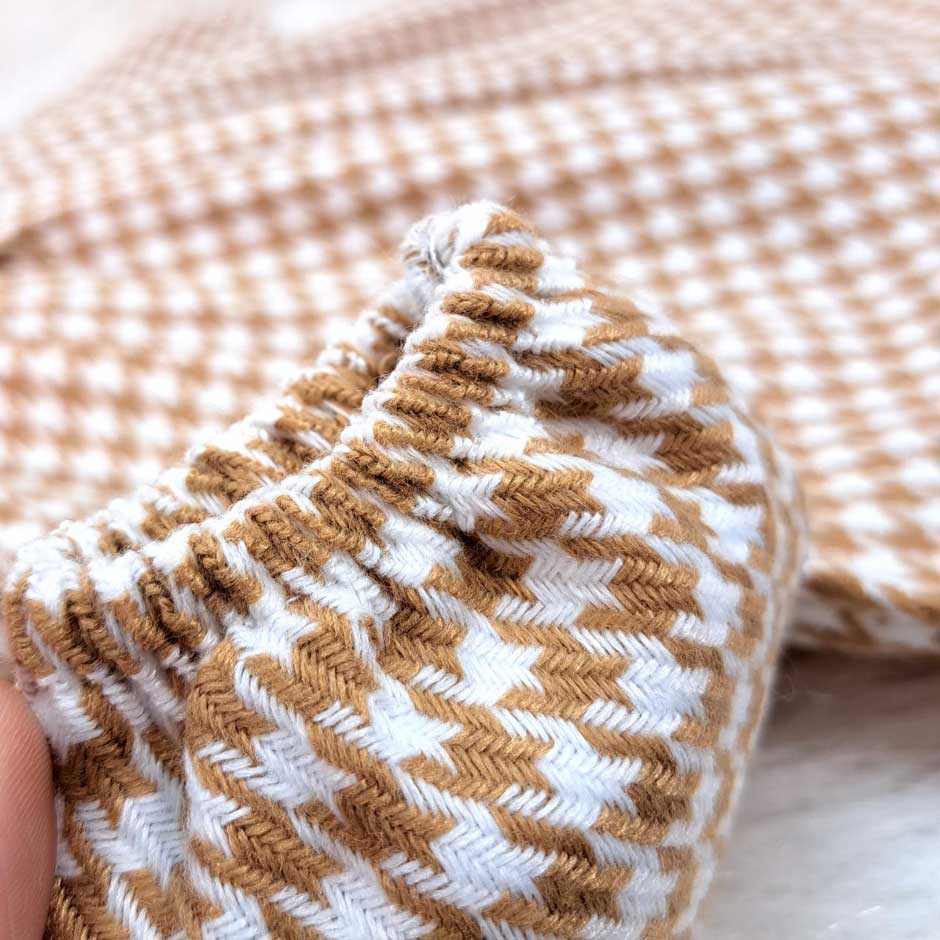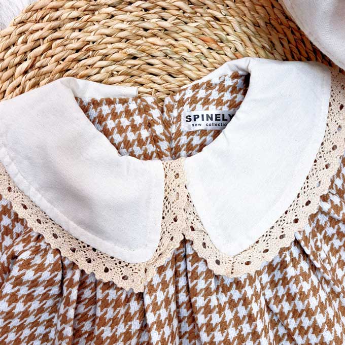 پیراهن چهارخونه کرمقهوهای با یقه توردار