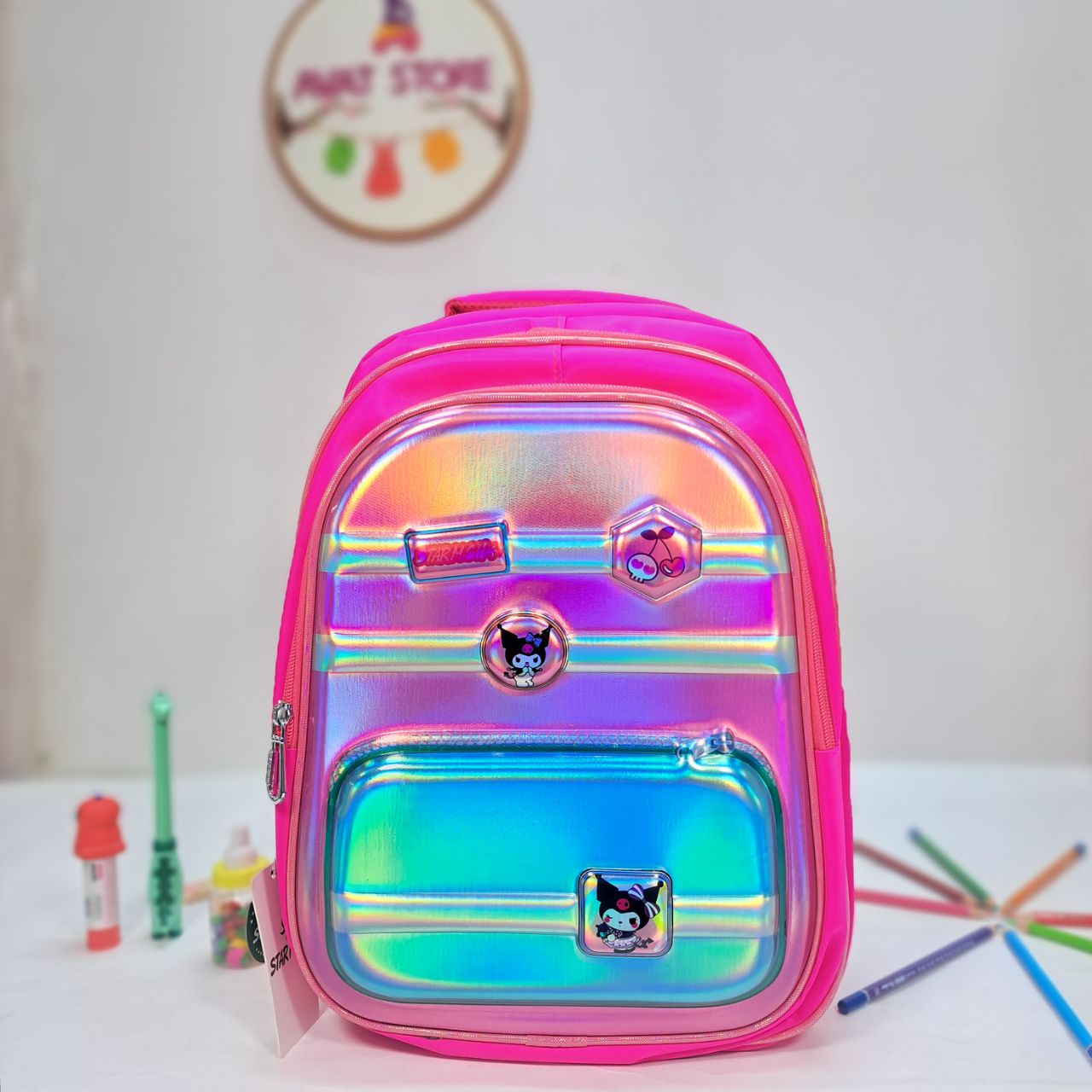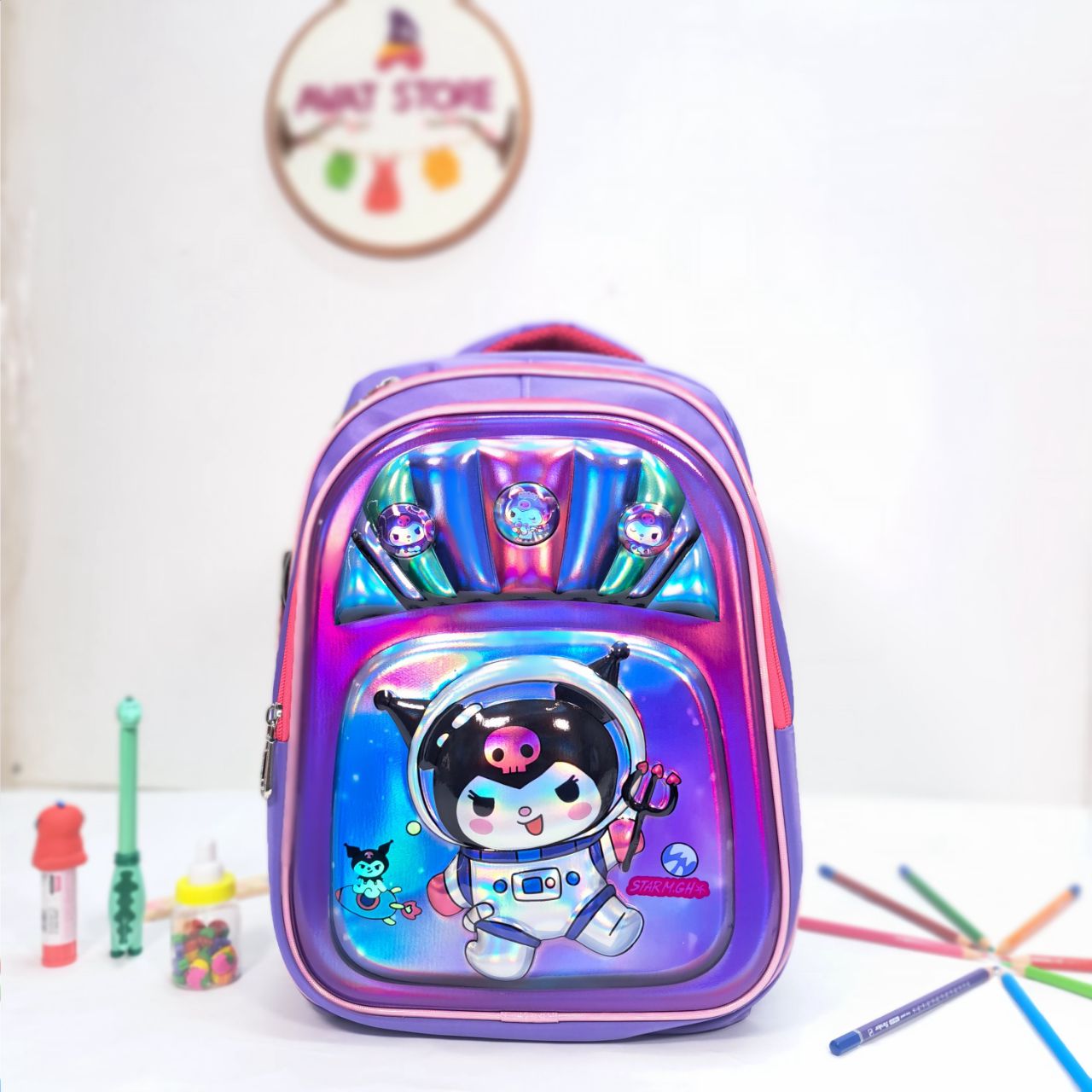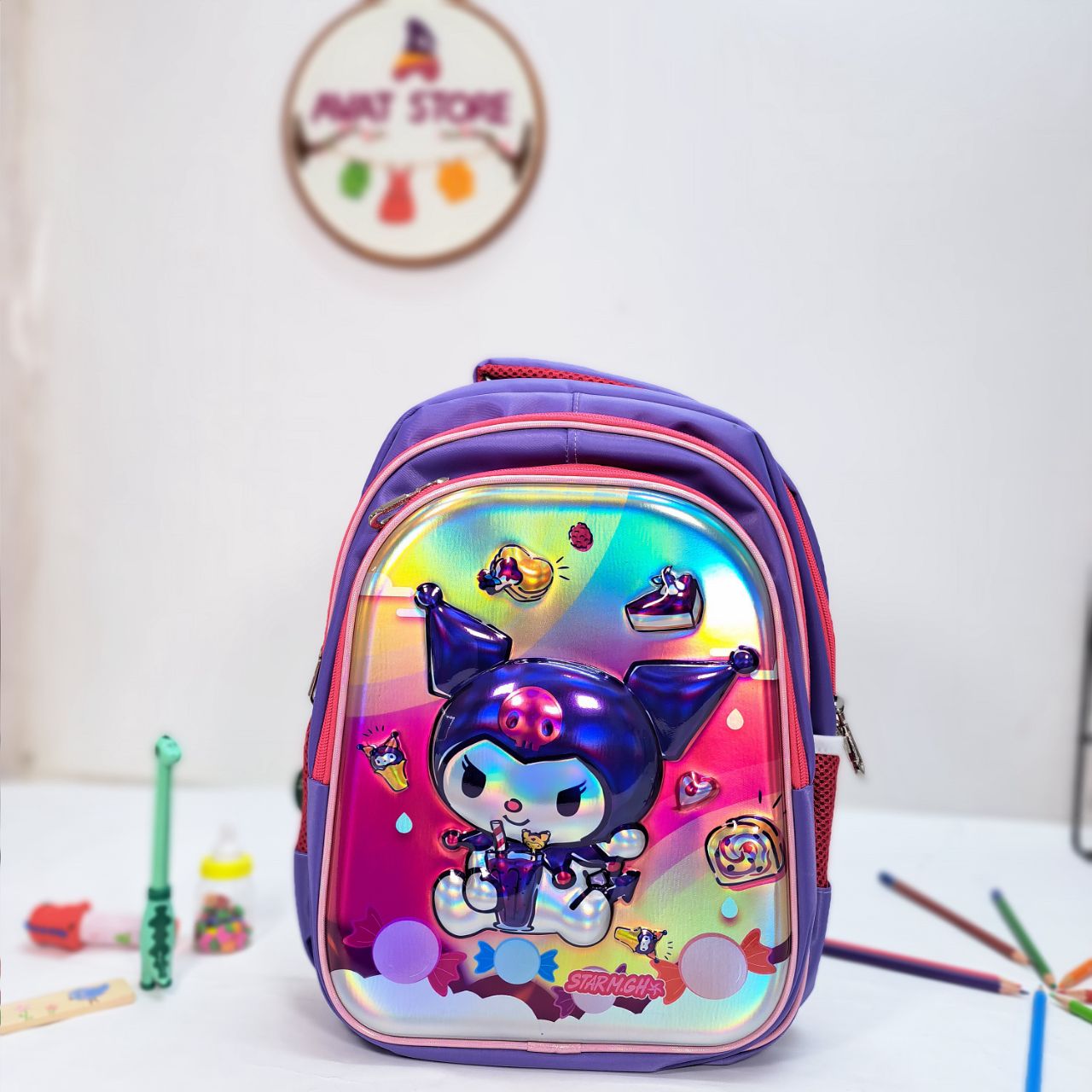 کولهپشتی مدرسه طرح کرومی (Kuromi) یک انتخاب خاص و جذاب برای دانشآموزان است که عاشق شخصیتهای فانتزی و رنگهای شاد هستند. این کوله با طراحی سهبعدی براق و رنگینکمانی، جلوهای منحصربهفرد دارد و توجه هر کودکی را جلب میکند.